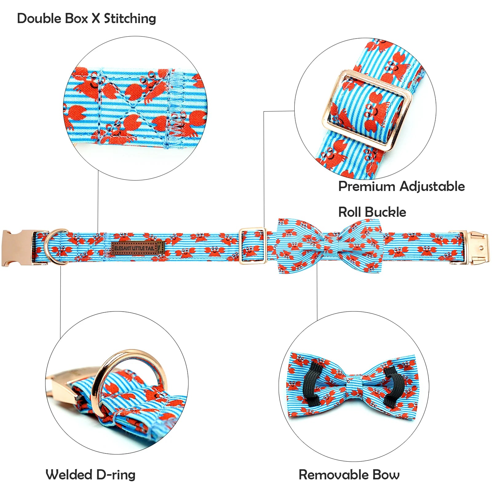 HANDMADE BOW : Each dog bowtie is attached to collar by using two elastic straps and bows all handmade. The elastic positioned each side of the bow prevents it from moving around on the collar. We do the double box stitch at all of the stress points for added strength.
