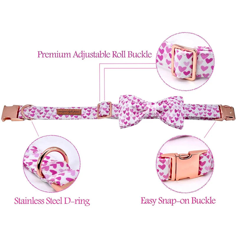 Unique Style Paws Cotton Dog Collar with Bow Tie Valentine Handmade Pet Dog Collar Heart Dog Collar for Large Medium Small Dog